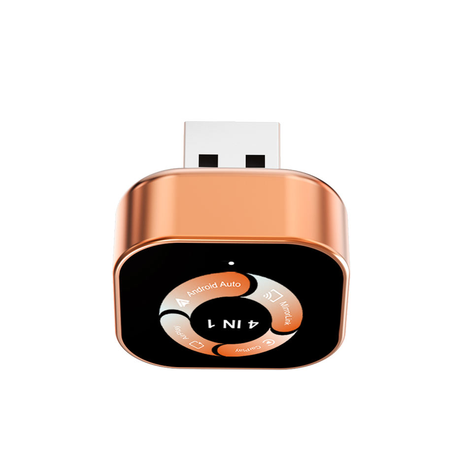 Boîtier AI CarPlay d'usine 2026 4-en-1 sans fil, adaptateur vidéo intelligent Android Auto en métal et verre, boîtier orange pour voiture