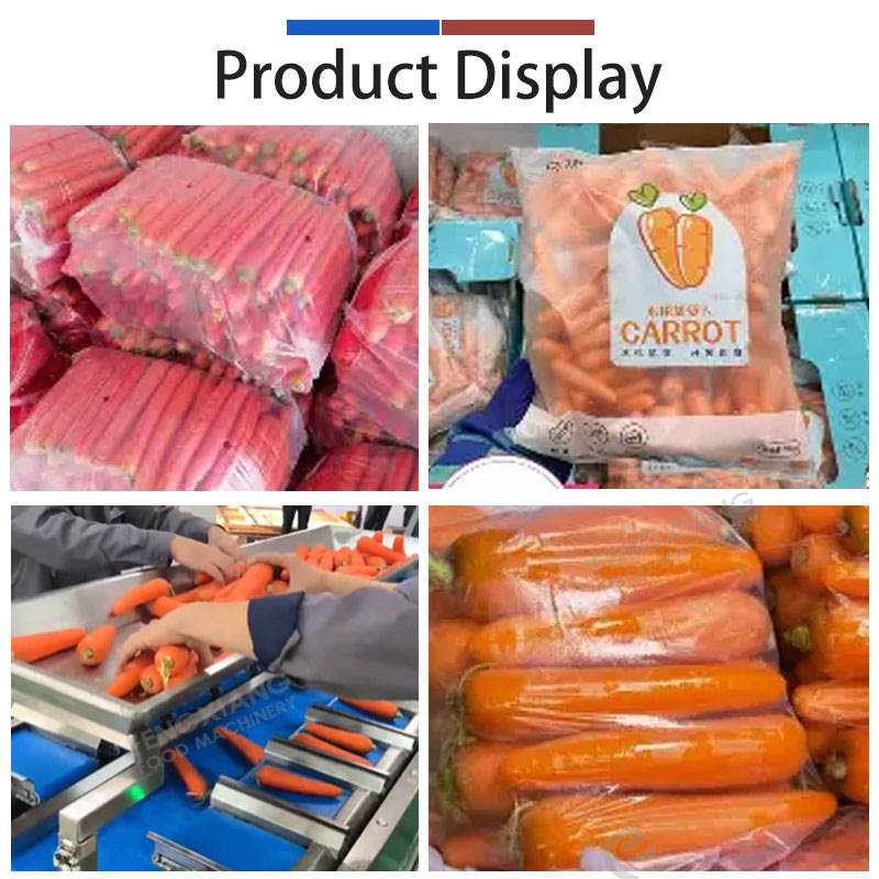 Ligne de traitement industrielle pour carottes et radis : machine de lavage, pelage, tri, pesage et emballage de carottes