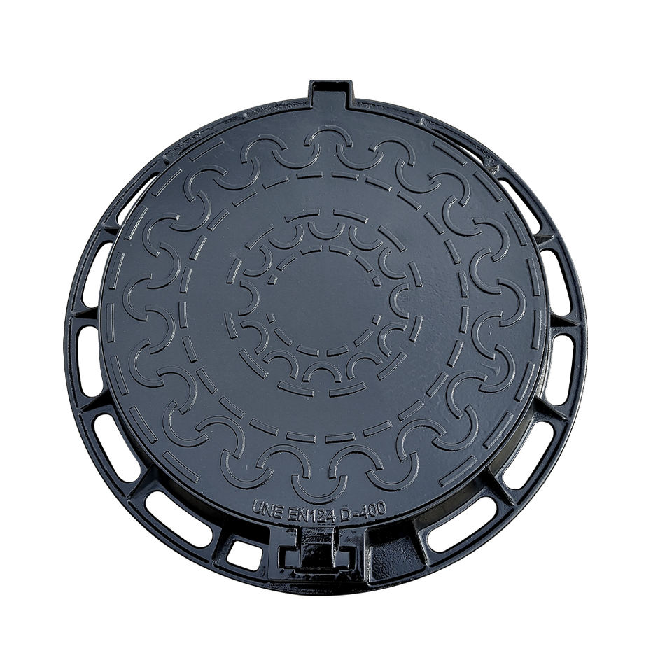 Couvre-regard rond de sécurité routière en fonte d'acier moulée en usine, système de verrouillage EN124 personnalisé, logo personnalisé en fonte ductile D400
