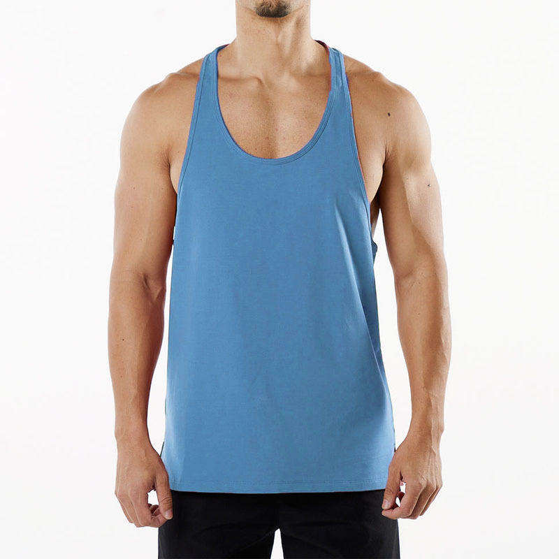 Débardeurs de sport unis à col en V, coupe ajustée, en polyester et coton tricoté respirant, avec logo personnalisé, prix usine