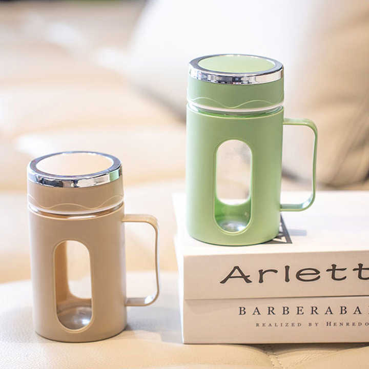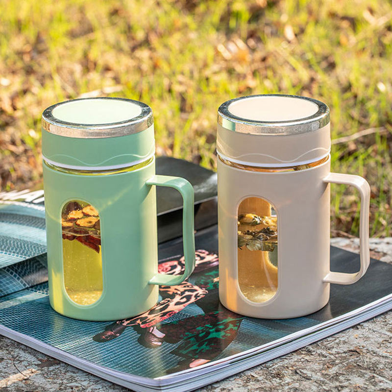 Usine Pas Cher Logo Personnalisé Bouteilles D'eau En Verre Poignée Étanche Tasse D'eau Chaude pour Usage De Bureau Activités De Plein Air Camping Tours