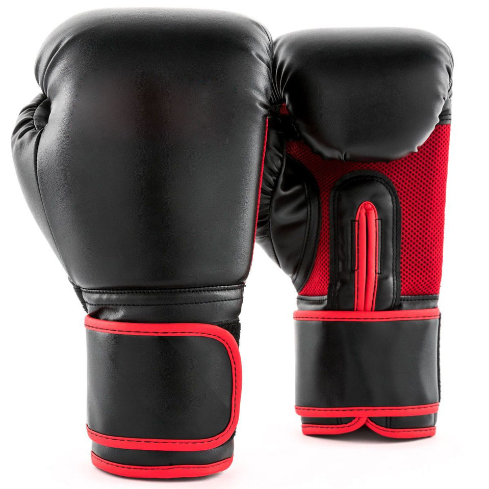 Gants de boxe d'entraînement professionnel personnalisés bon marché d'usine Offre Spéciale en cuir PU respirant extensible Logo personnalisé noir rouge