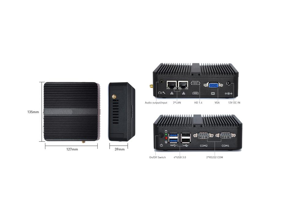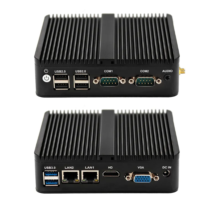 Usine Pas Cher Mini Ordinateur PC Intel Pentuim Argent J5005 Dual 2 Lan Deux COM Ubuntu Win 10 Nuc Nano Boîte Industrielle Sans Ventilateur PC
