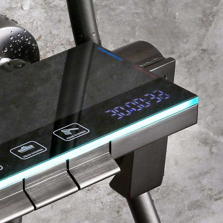 Ensemble de Douche Système 4 Fonctions avec Robinet Affichage Numérique, Pluie et Lumière d'Ambiance, Gris Canon, Prix Usine