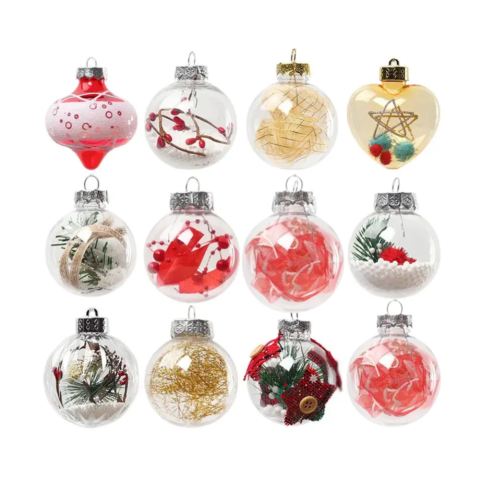 Ensemble de boules de Noël d'usine, boule transparente, décoration suspendue, boule de Noël en plastique circulaire creuse sans couture en Pavi