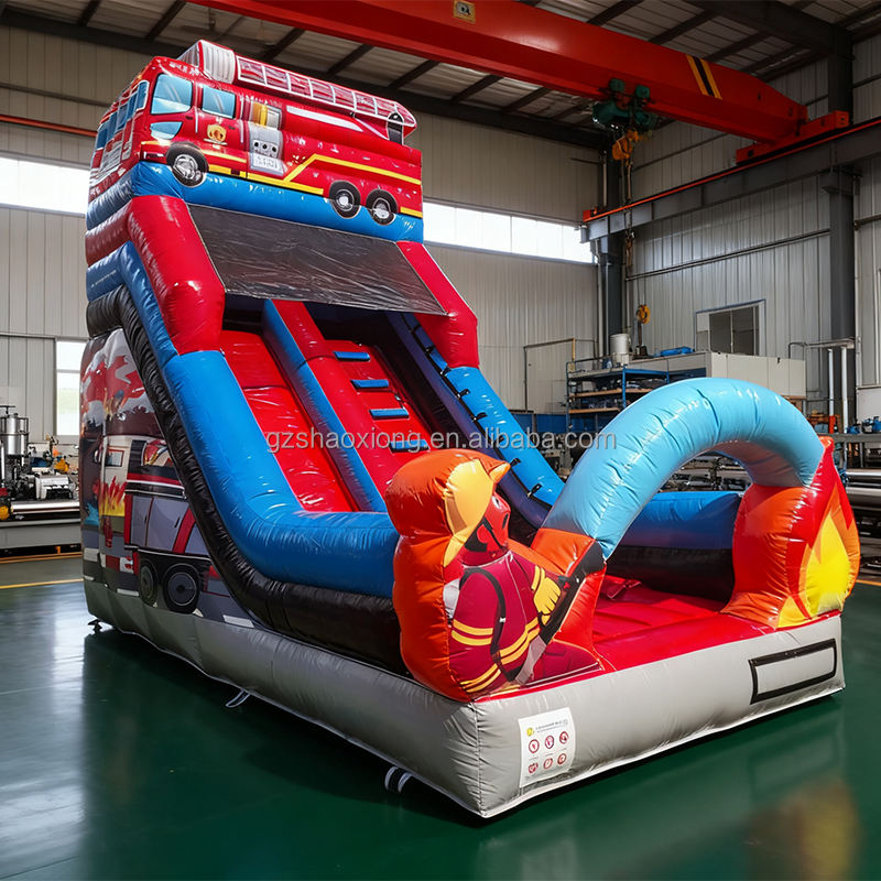 Glissière d'eau de thème de lutte contre l'incendie de videur sec humide gonflable extérieur de PVC d'usine pour la glissière gonflable de château d'enfants