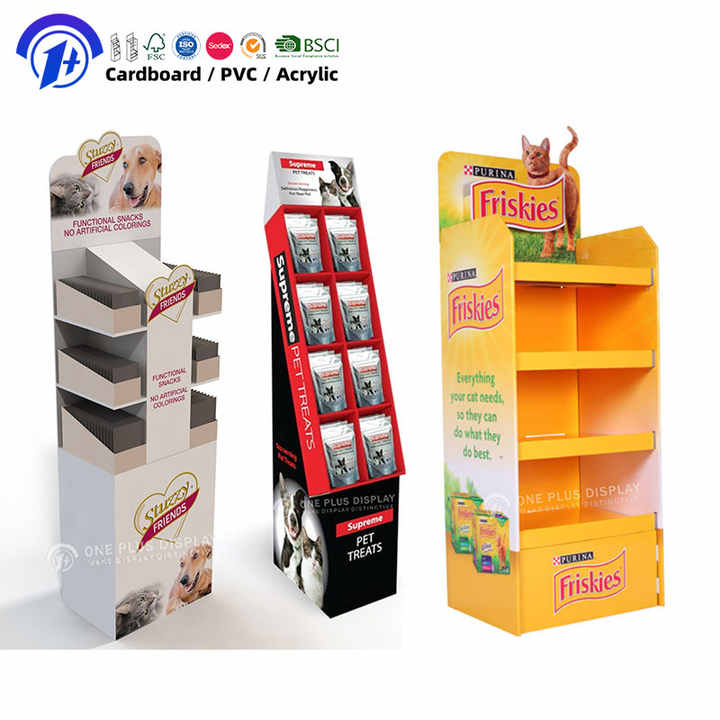 Support d'affichage de comptoir pour aliments pour animaux de compagnie en papier ondulé d'usine, présentoir en carton pliable