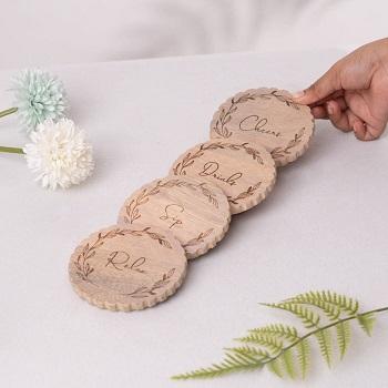 Tapis de tasse d'usine sous-verres en bois naturel en vrac avec logo de gravure au laser sous-verres en bois noyer bambou Logo personnalisé rond cadeau vierge