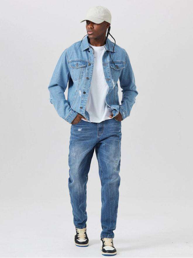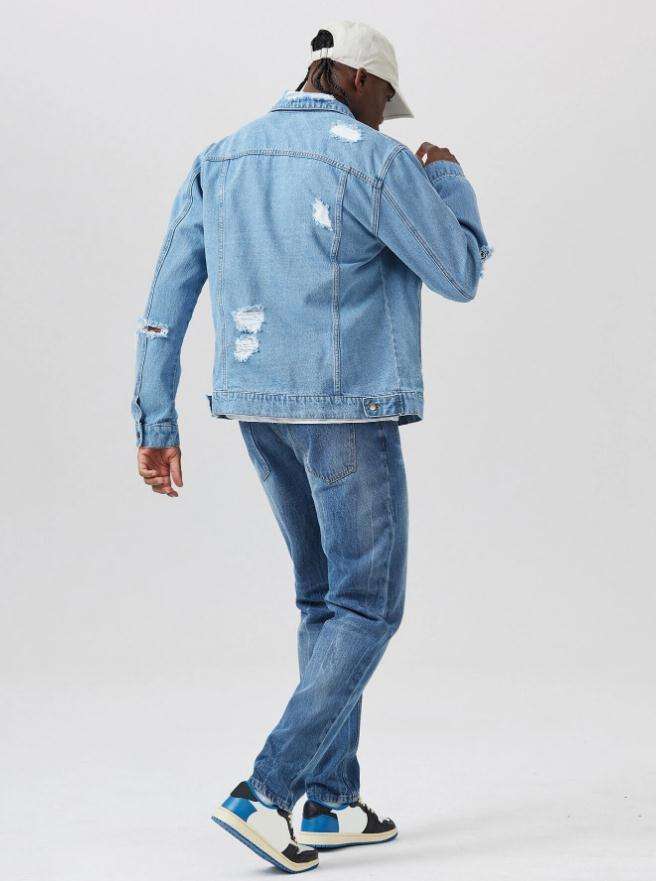 Vestes en jean personnalisées déchirées 100% coton personnalisées vente en gros veste en jean pour hommes à la mode de créateur lavage léger