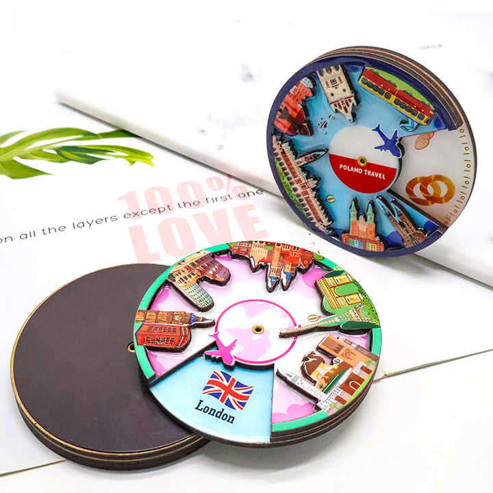 Machine de fabrication d'aimants de réfrigérateur rotatifs 3D personnalisés en usine, forme personnalisée, bois résistant, époxy, souvenir de voyage à Londres, design personnalisé