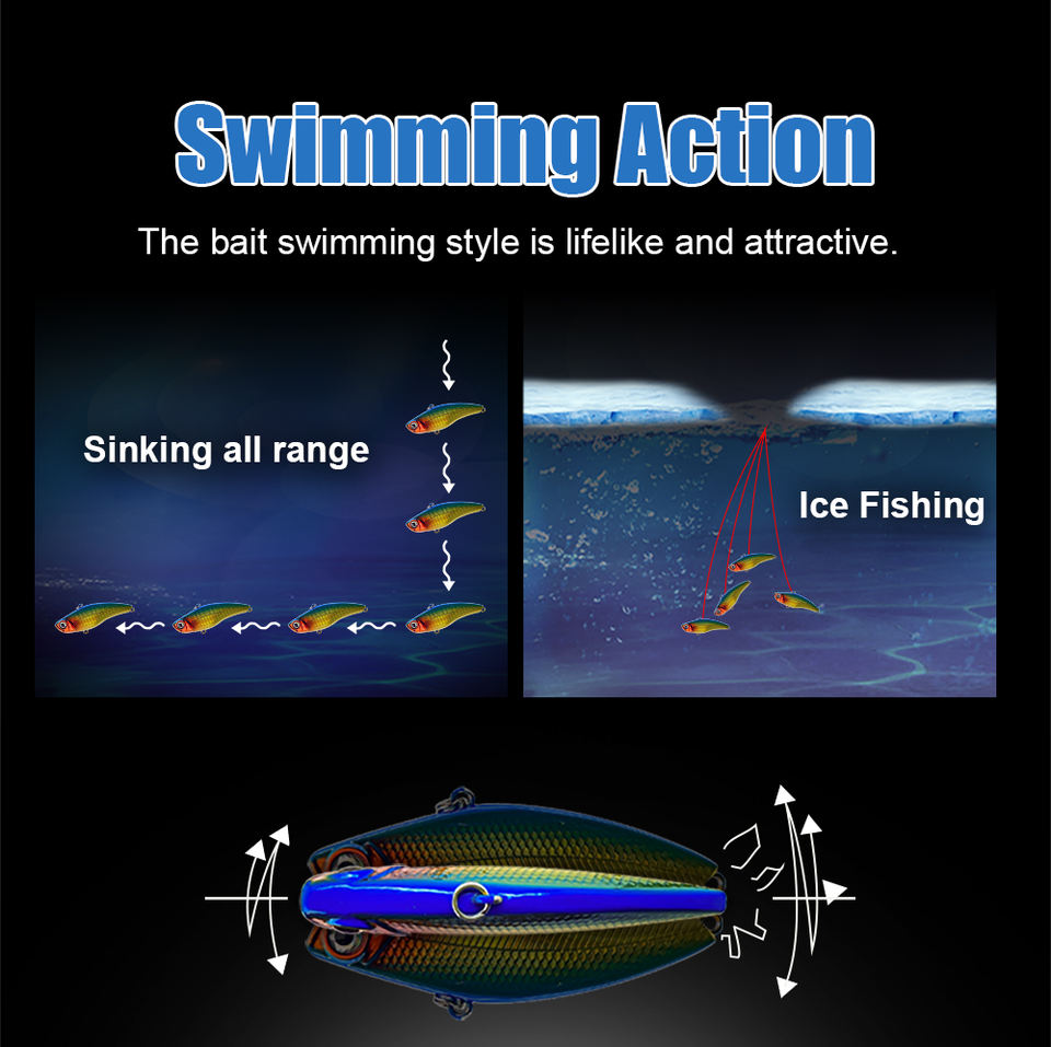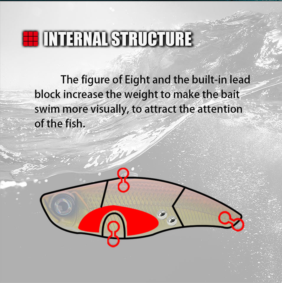 Usine personnalisée 65mm 13g plastique dur ABS VIB leurre pivotant coulant toutes gammes pour la pêche en rivière lac ruisseau