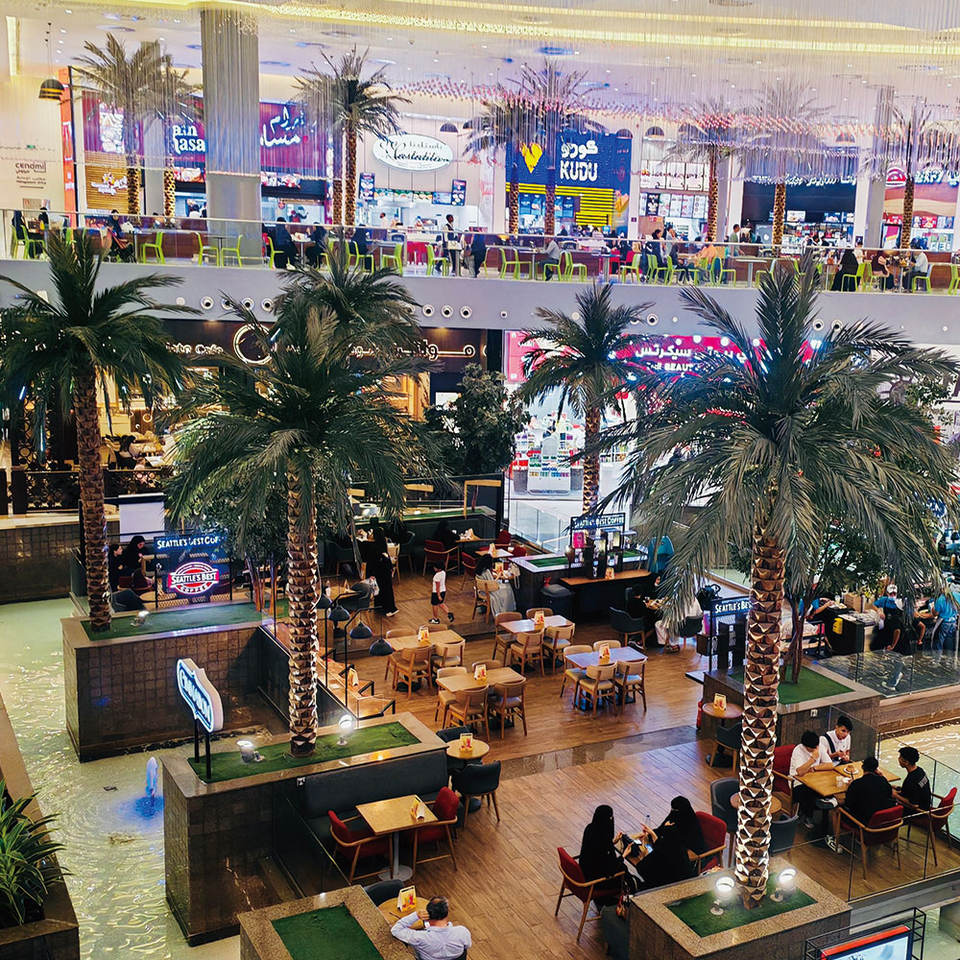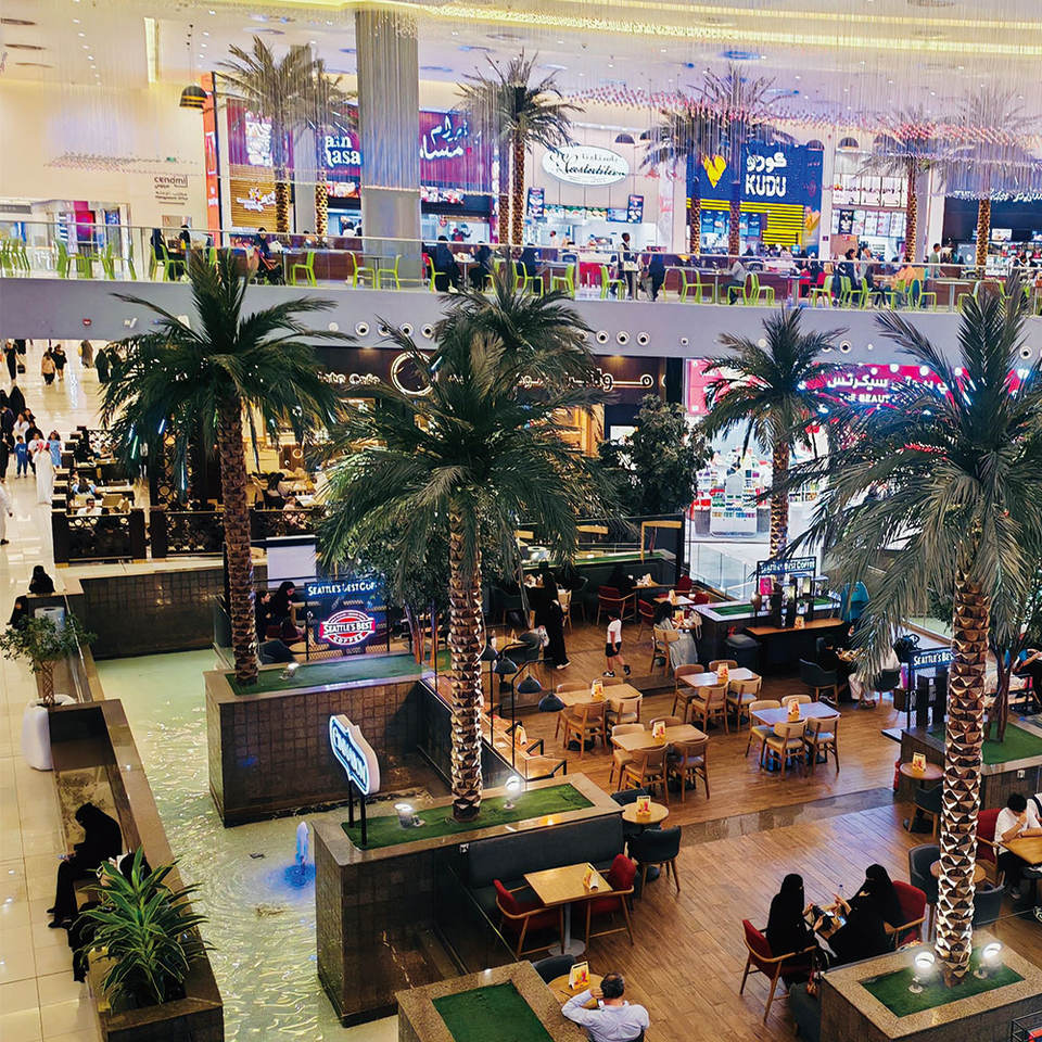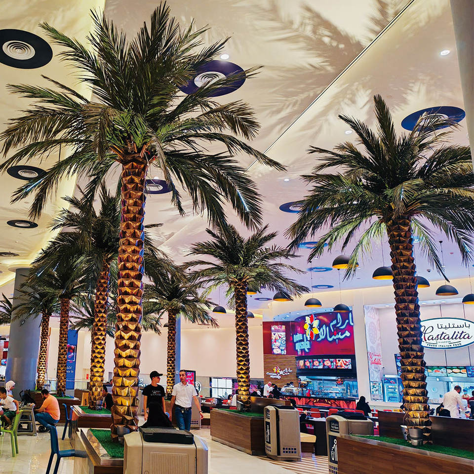 Palmier artificiel sur mesure, résistant à la décoloration, grand arbre artificiel pour centre commercial