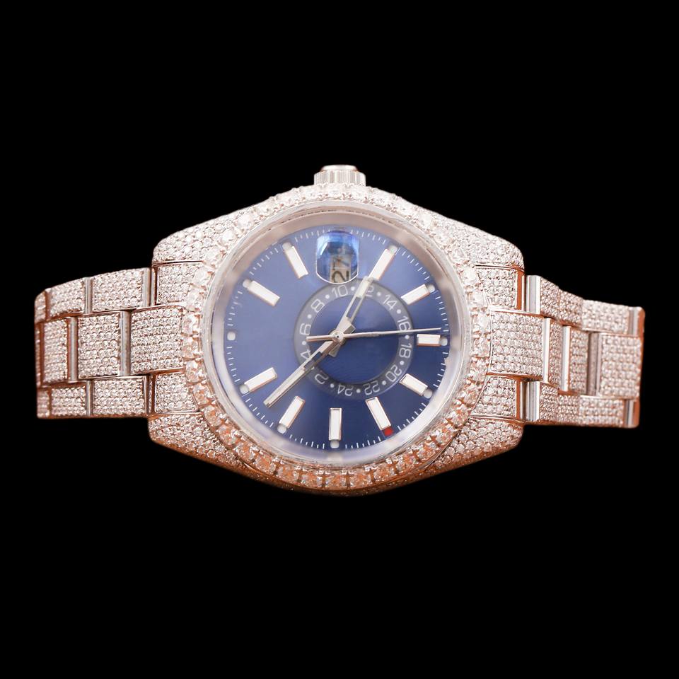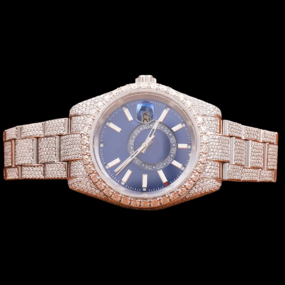 Montre Hip Hop Personnalisée de Qualité Supérieure avec Cadran Bleu et Sertissage Bezel, Diamants Moissanite Iced Out sur Mesure, Style Bust Down