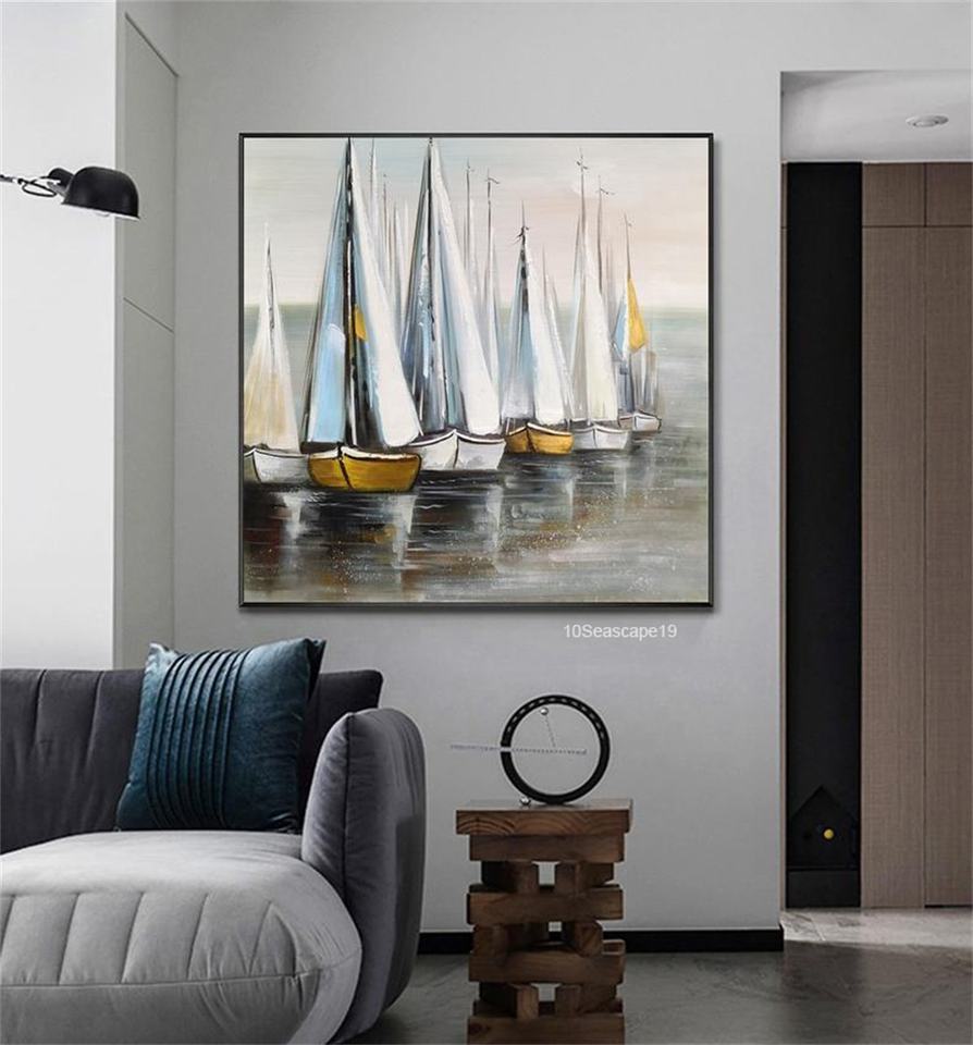Peinture à l'huile sur toile pour marin, pouces, art moderne abstrait, coucher du soleil, bateau