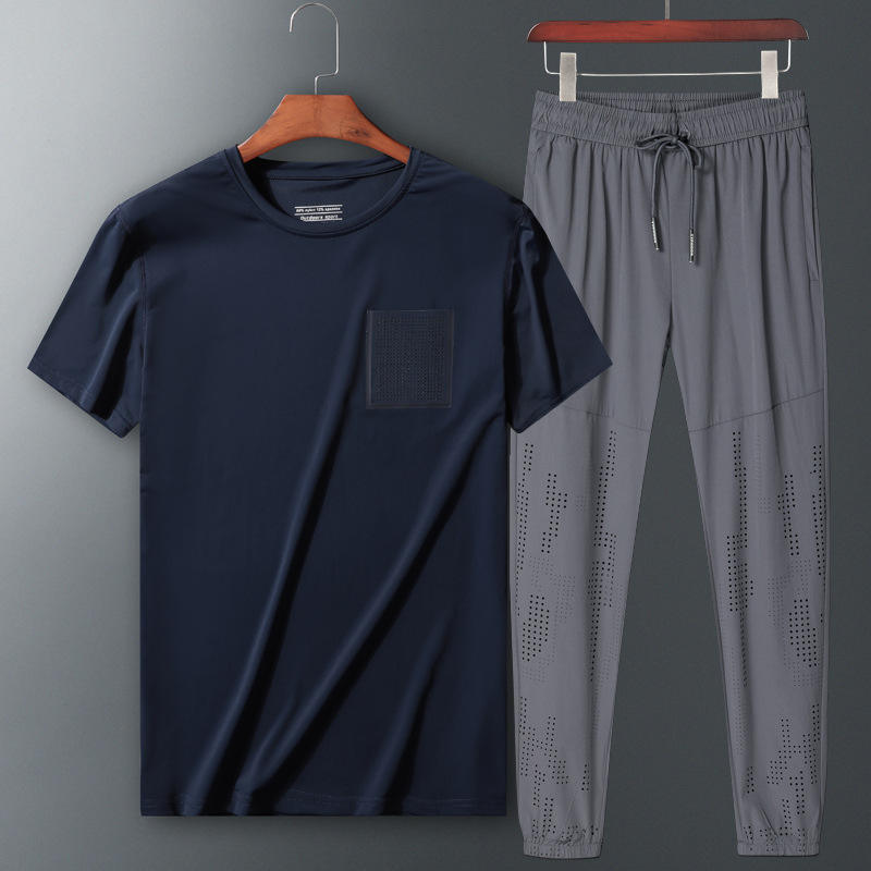 Ensemble 2 pièces de survêtement de sport pour homme, personnalisé en usine, vierge, haute qualité, séchage rapide, t-shirt à manches courtes et pantalon, pour l'entraînement, pas cher