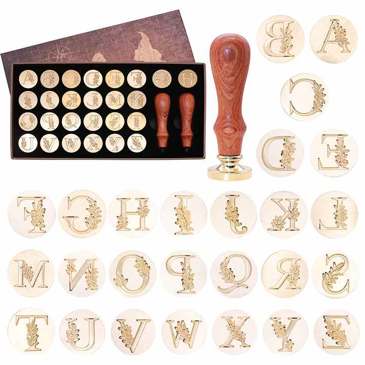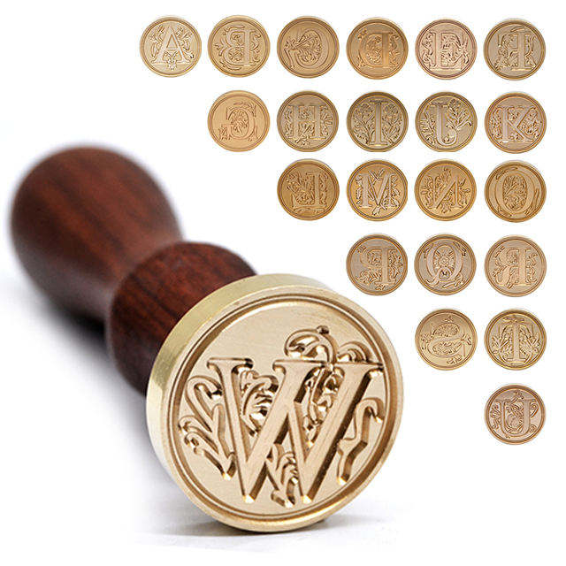 Tête de cuivre en laiton personnalisée, manche en bois rétro Alphabet initiales tampons de cire alphabétique