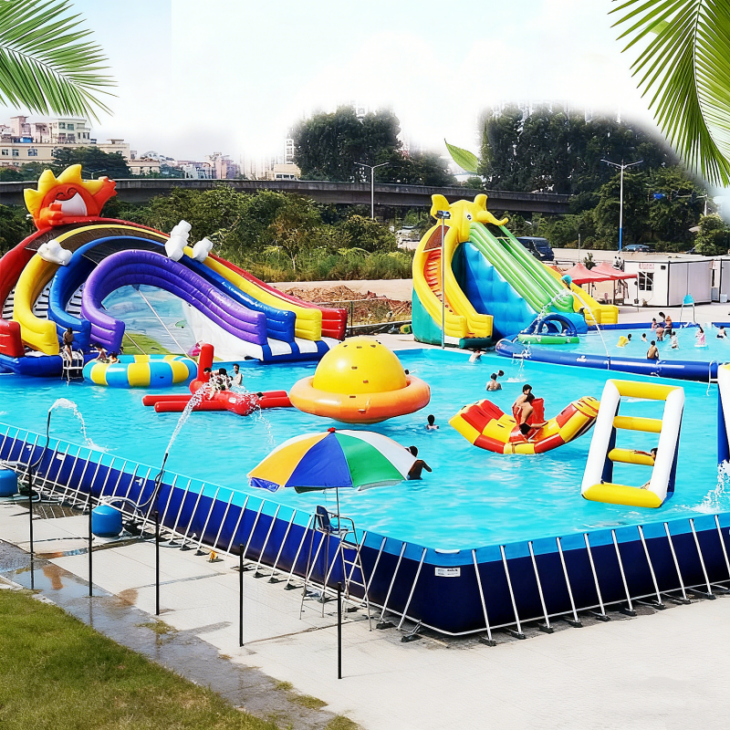 Piscine à cadre en acier pour adultes, grande piscine d'été pour parc aquatique, équipement d'amusement certifié CE, personnalisable en usine, avec fond en sable