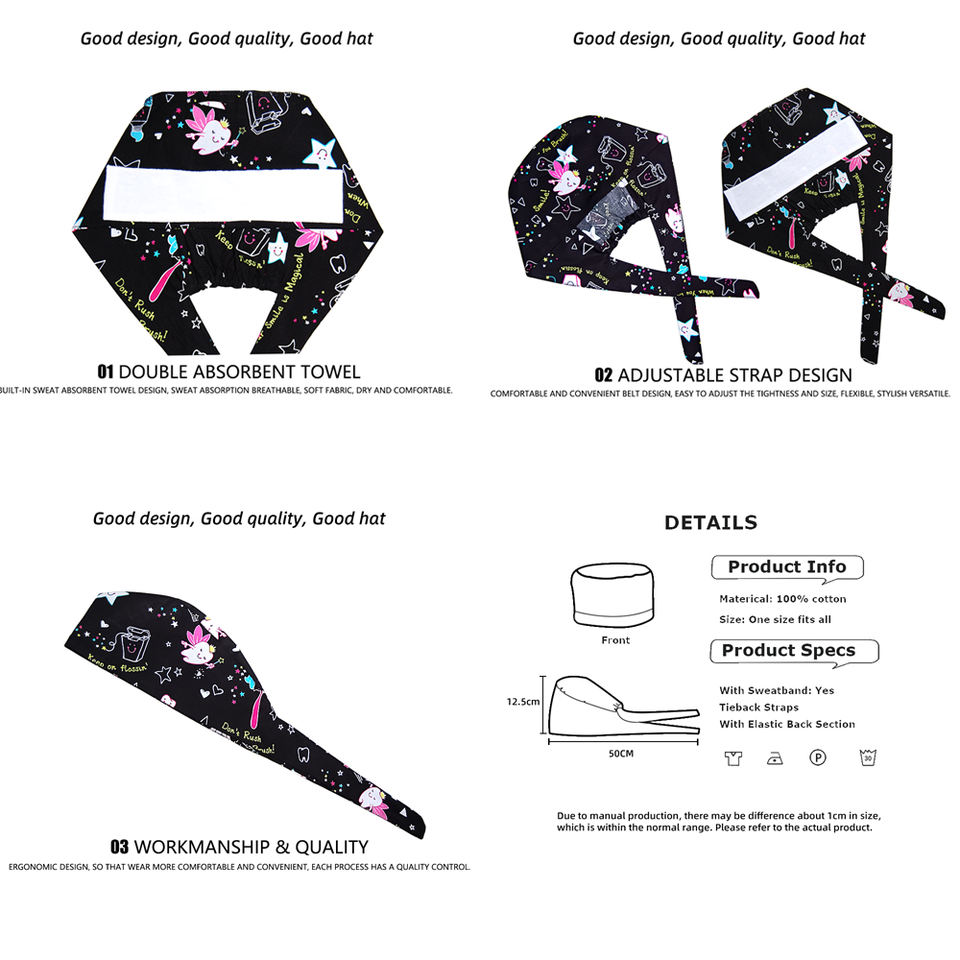 Chapeau chirurgical personnalisé en forme de chat de dessin animé, OEM ODM, avec logo, pour femmes et hommes, idéal pour la chirurgie et le personnel médical.