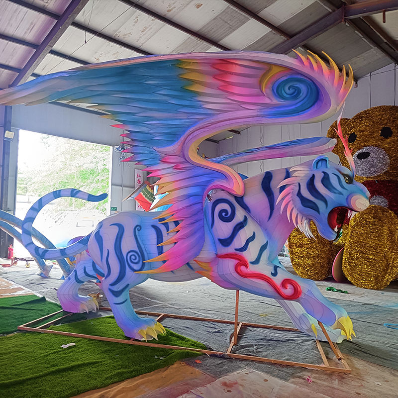 Usine personnalisé chinois tigre lanternes vacances éclairage Led soie lanternes mouche tigres lanterne à vendre