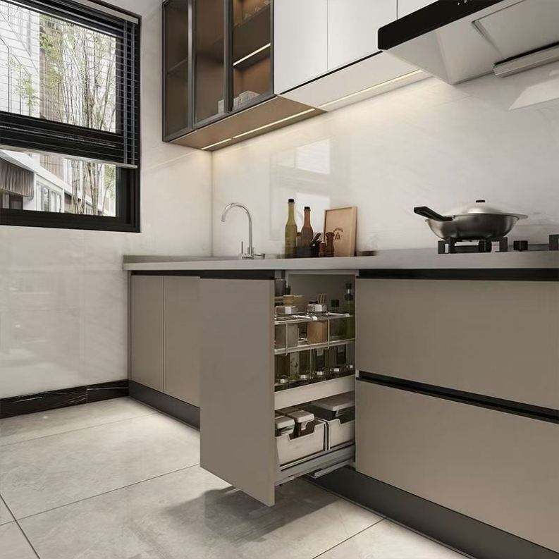 Armoires de cuisine de luxe au design classique en bois massif avec comptoir en pierre de quartz
