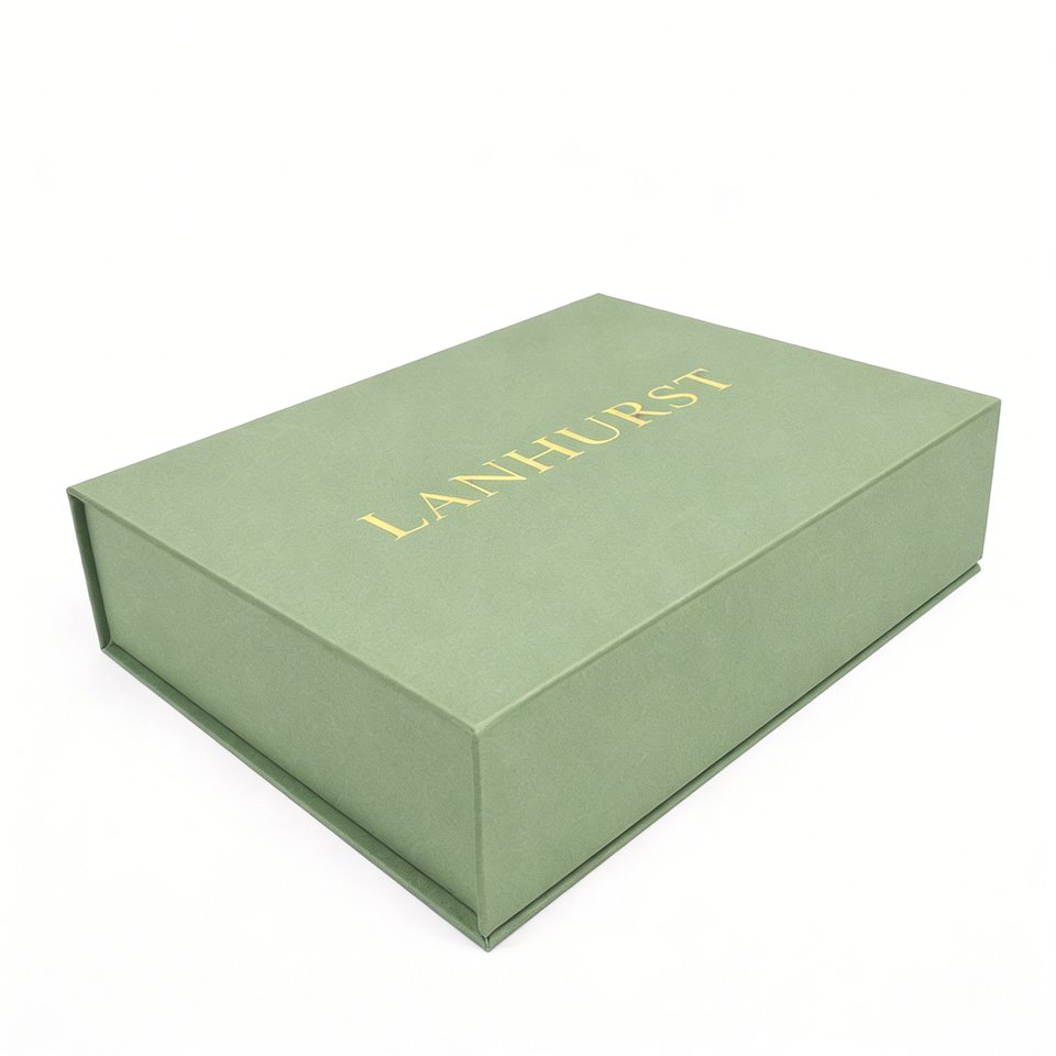 Boîte rigide pliable sur mesure en matériaux recyclés avec finition brillante et gaufrage pour accessoires électroniques et emballages cadeaux