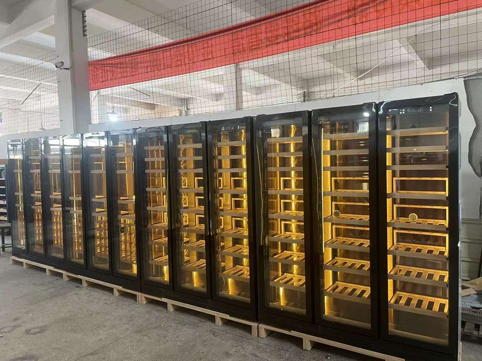 Cave à vin en acier inoxydable avec refroidisseur LED à température constante, sur mesure, pour l'affichage et le stockage du vin, 430L