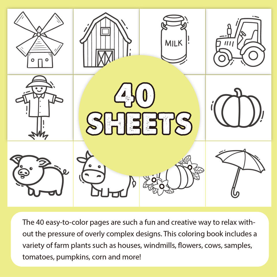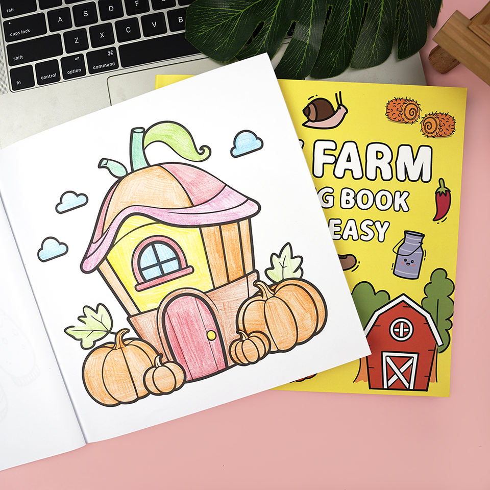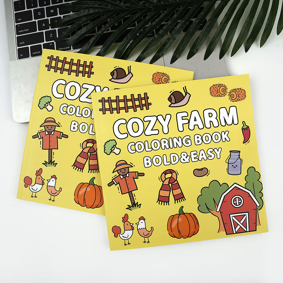 Livre de coloriage de dessin animé de ferme confortable personnalisé en usine pour enfants livre de poche de 40 pages avec du matériel en carton de papier d'art