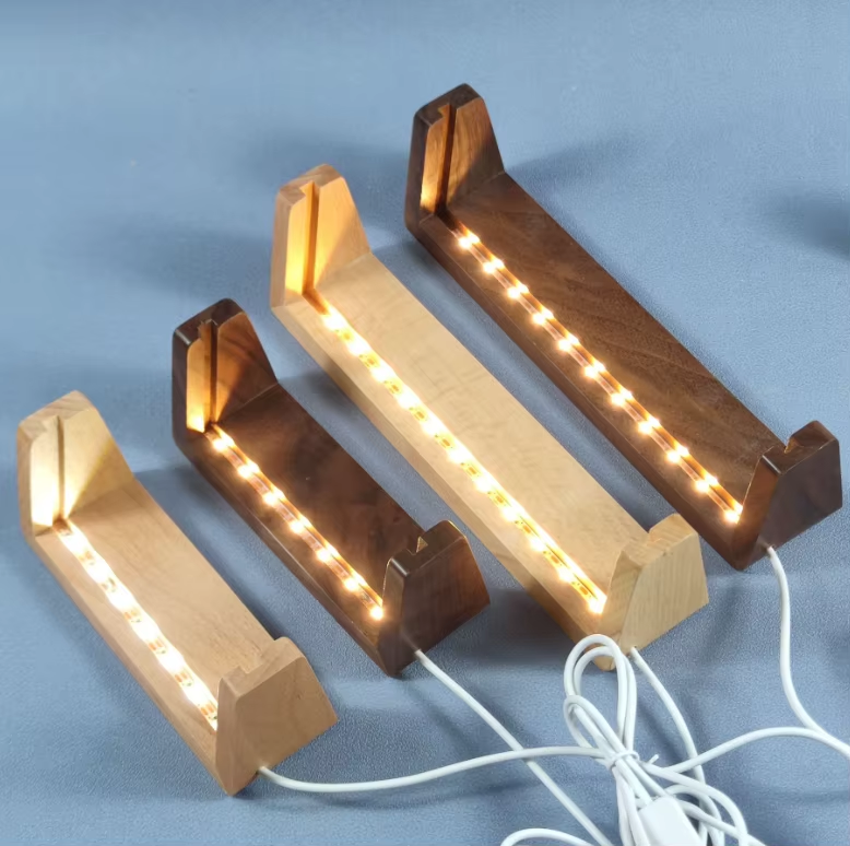 Base de lampe en bois en forme de U personnalisée en usine, LED blanc chaud, décoration de bureau pour salon, cadeau créatif, base de lampe en bois