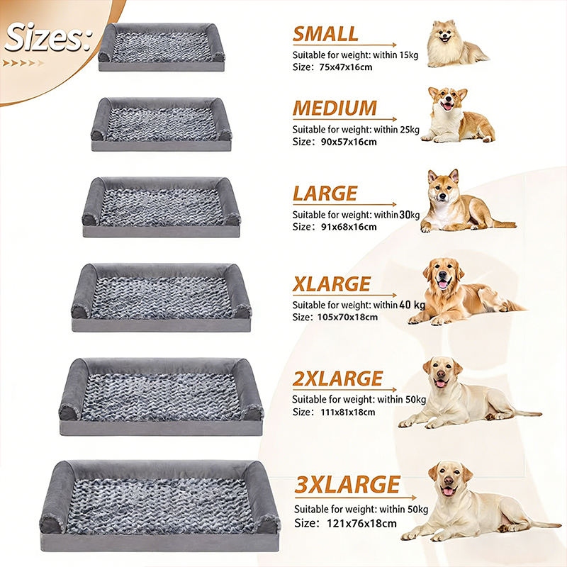Canapé pour animaux de compagnie en velours en forme de C, sur mesure, grand lit pour chien, anti-anxiété, confortable, indestructible, orthopédique