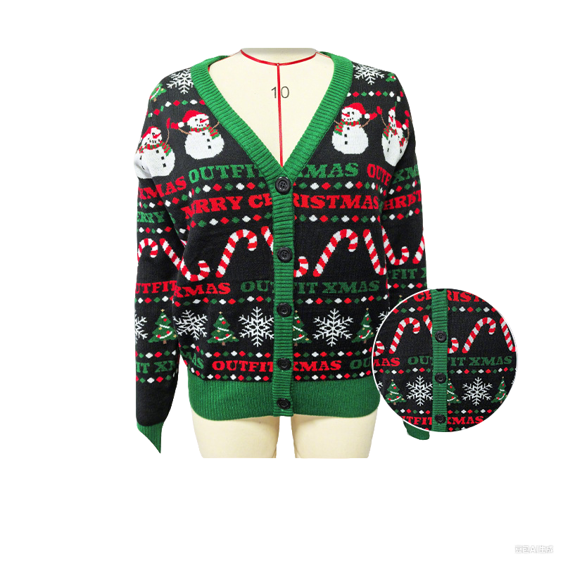 Usine personnalisé pull en tricot mode de Noël mignon col en V à manches longues chandails pour femmes de Noël en gros