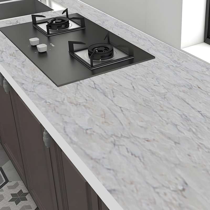 Pierre de quartz artificielle polie à la main sur mesure en usine Comptoir de cuisine en quartz gris Calacatta pour hôtel
