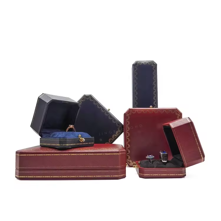 Boîte d'emballage de bijoux en carton vintage haut de gamme personnalisée en usine, avec gaufrage, matériaux recyclés pour bagues, boucles d'oreilles, pendentifs