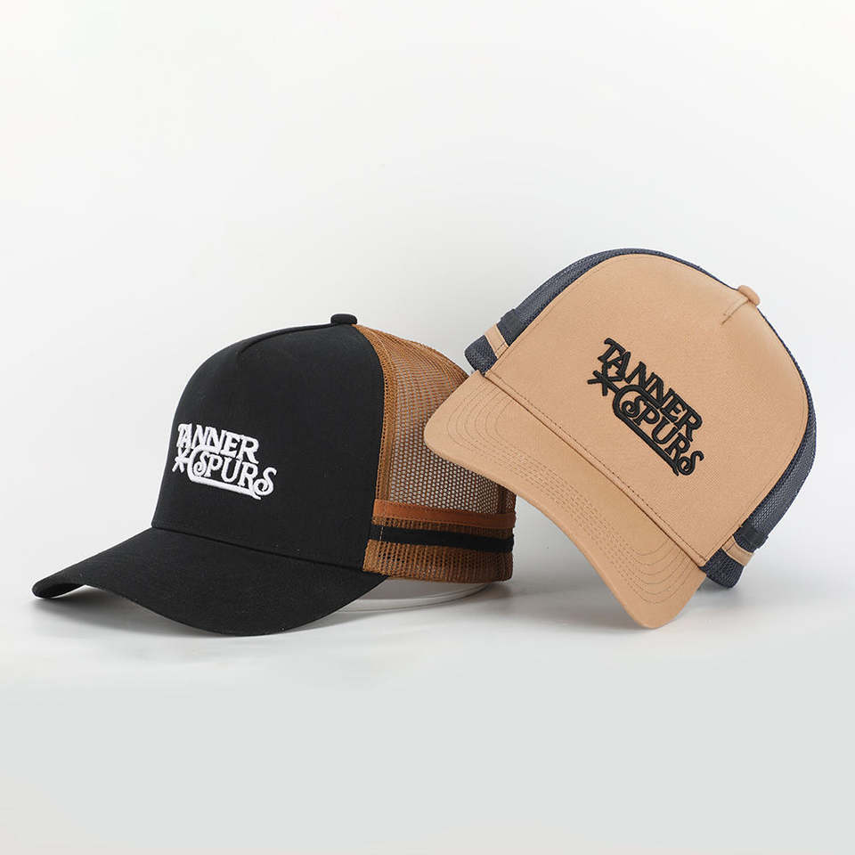 Chapeaux de camionneur à profil haut personnalisés en usine australie 2 bandes latérales Y2K fêtes de performance PK tissu jersey velours éponge en toile