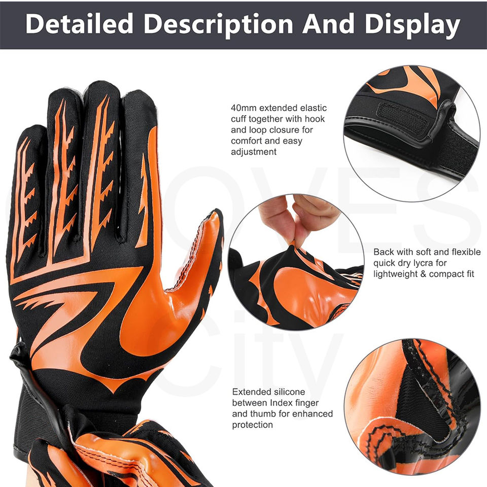 Gants de football américain de haute qualité personnalisés en usine Top-Style Anti-Cut Anti-Impact Meilleur prix Protection des mains et des bras Mode