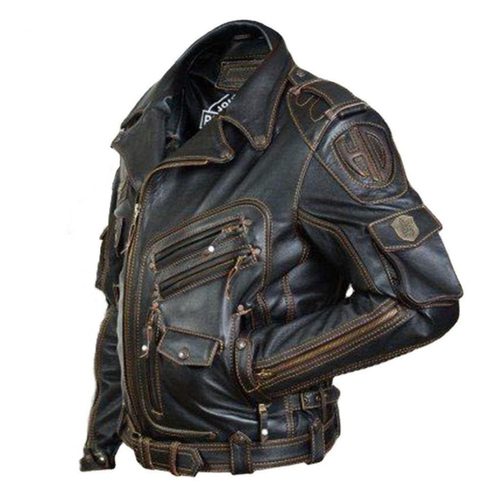 Veste de moto en cuir PU vintage pour homme, personnalisée en usine, de haute qualité, avec plusieurs fermetures éclair et coupe-vent