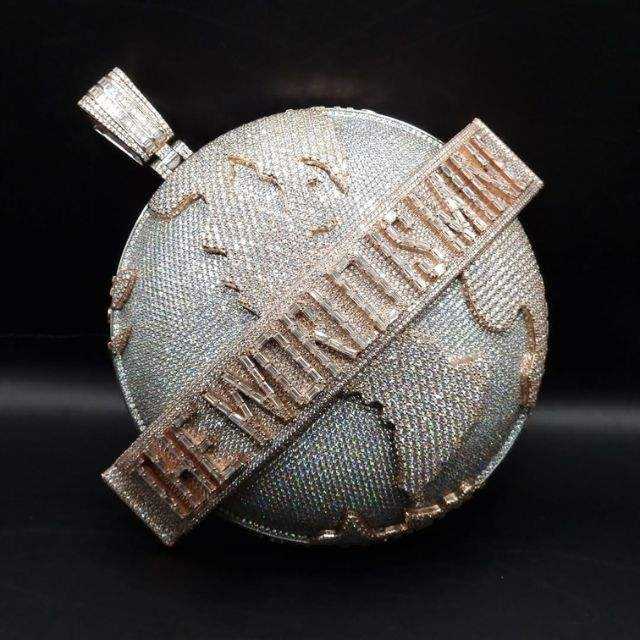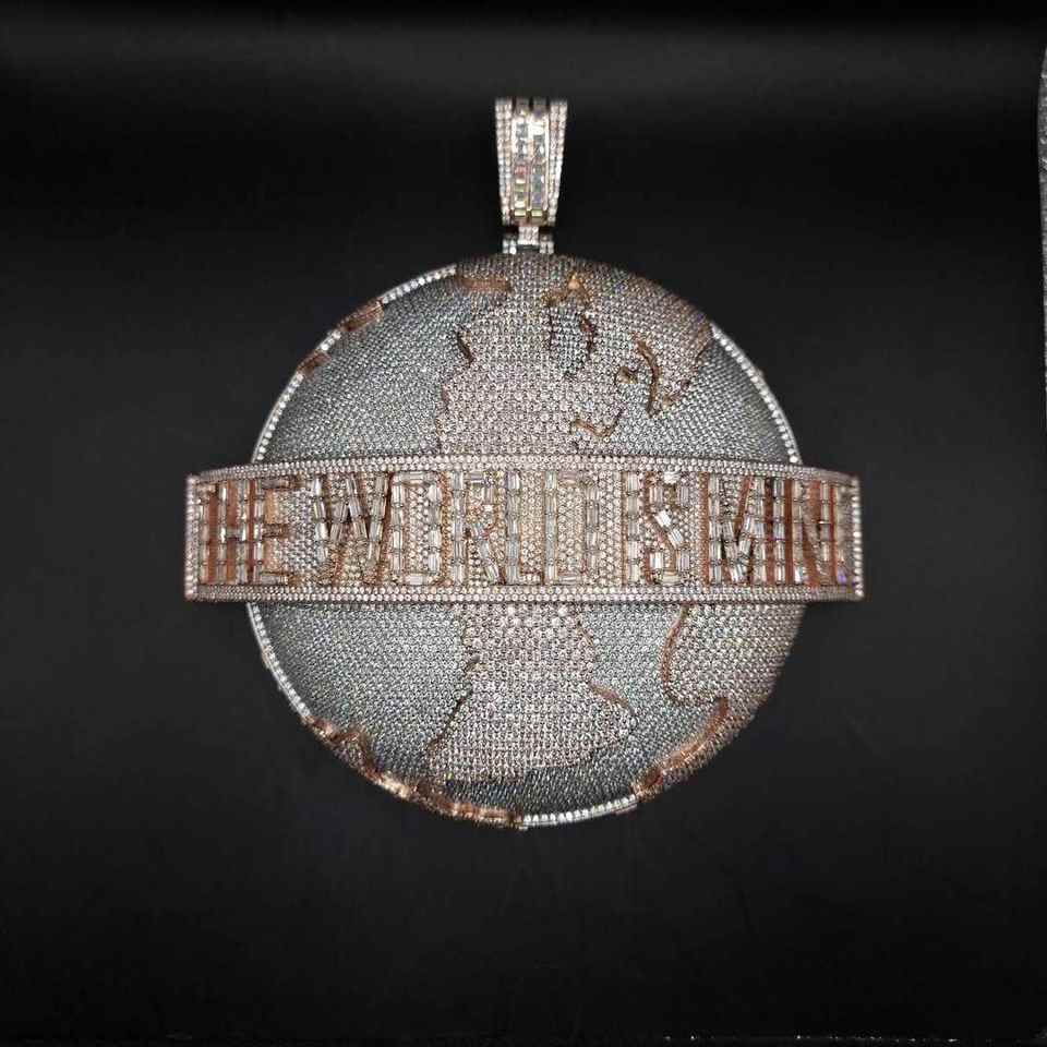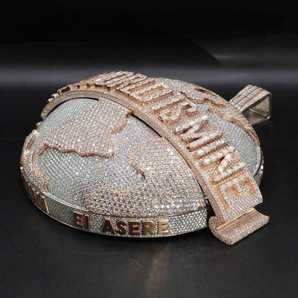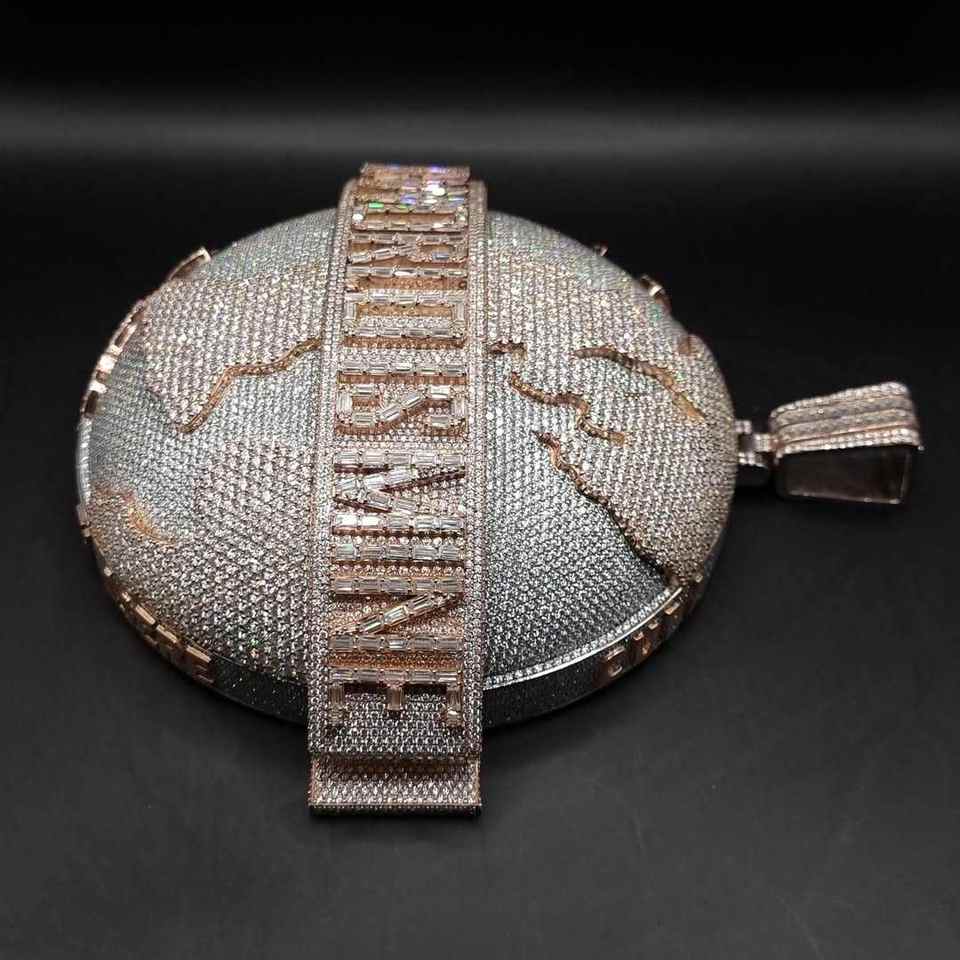 Breloques 3D épaisses en forme de Terre, personnalisées en usine, style Hip Hop, en argent 925 plaqué or rose, entièrement serties de diamants Moissanite couleur D VVS