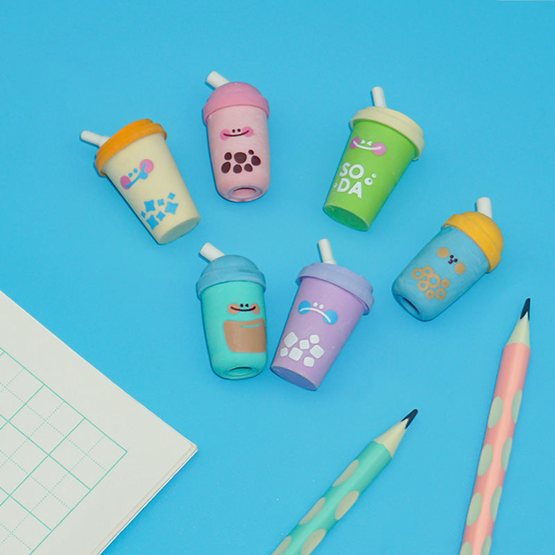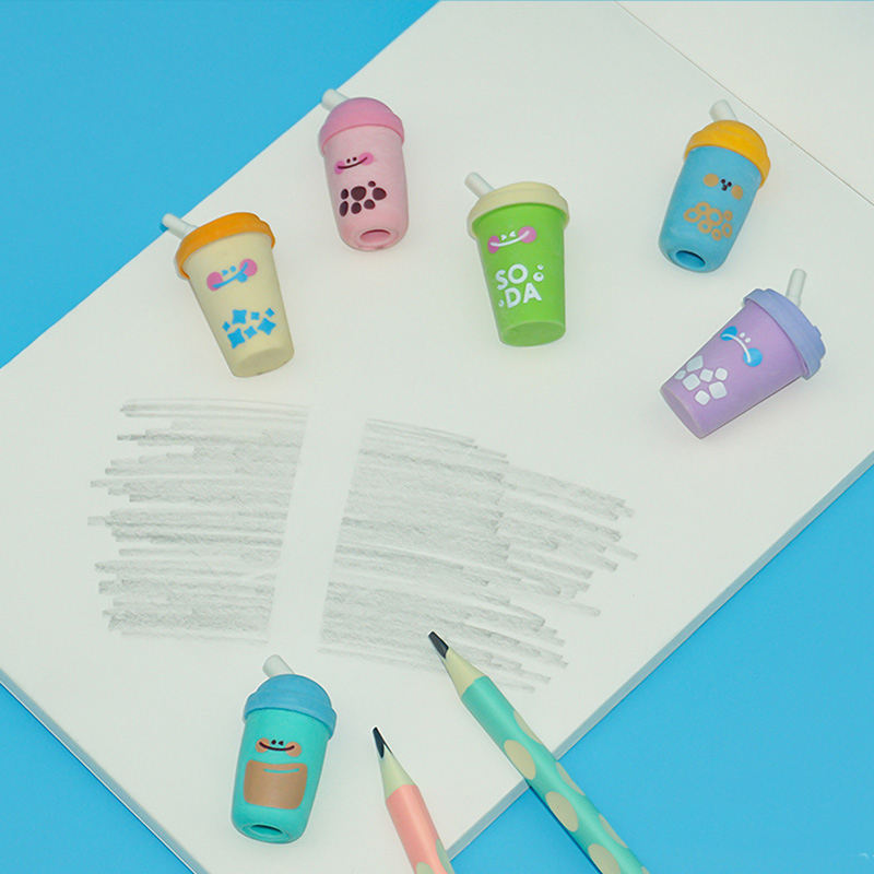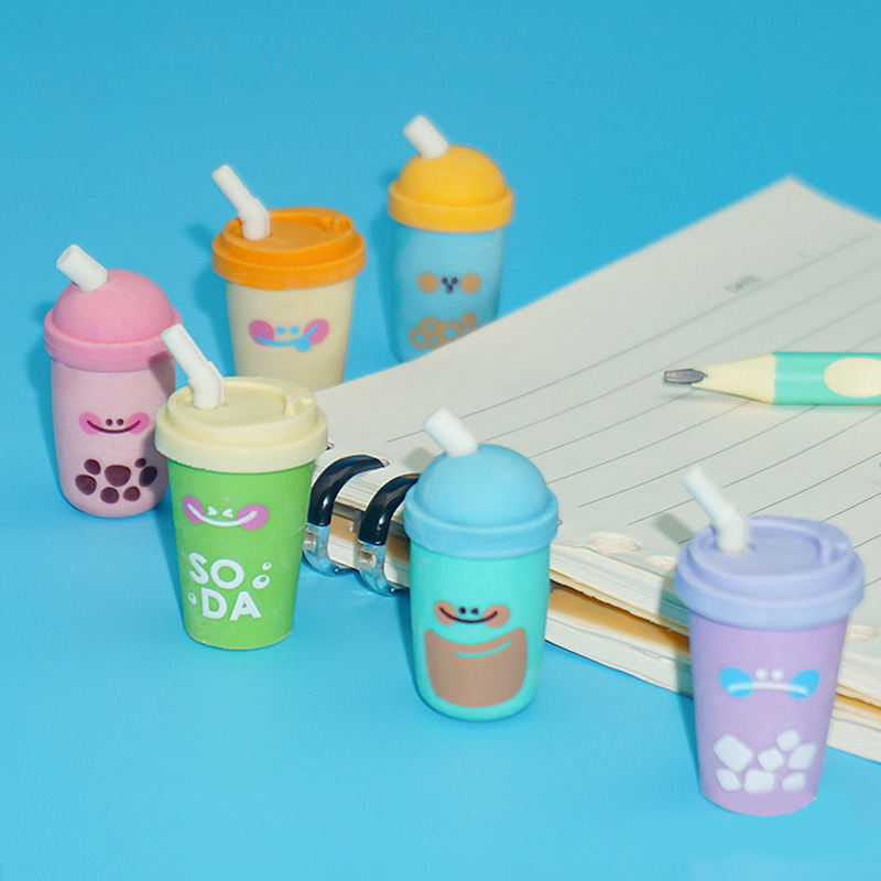Ensemble de gommes 3D à la mode, fabrication personnalisée, vente chaude, gommes à crayon créatives en forme de tasse à bulles, 6 pièces/paquet, gommes colorées pour enfants