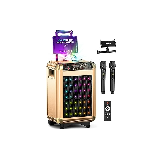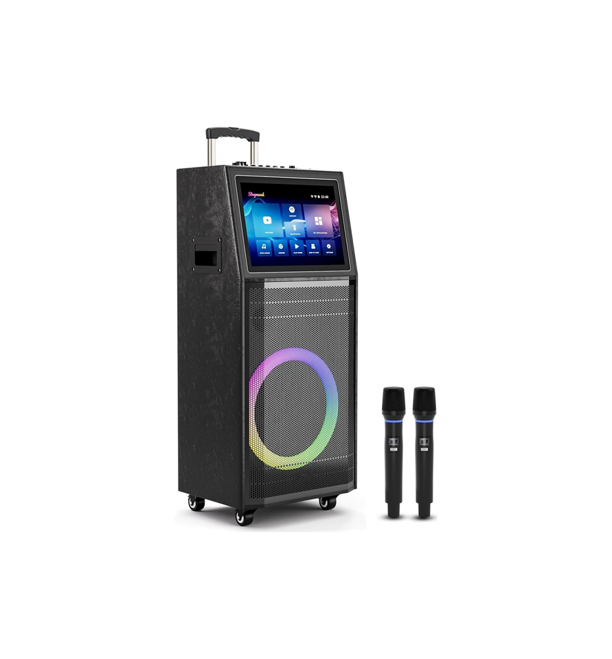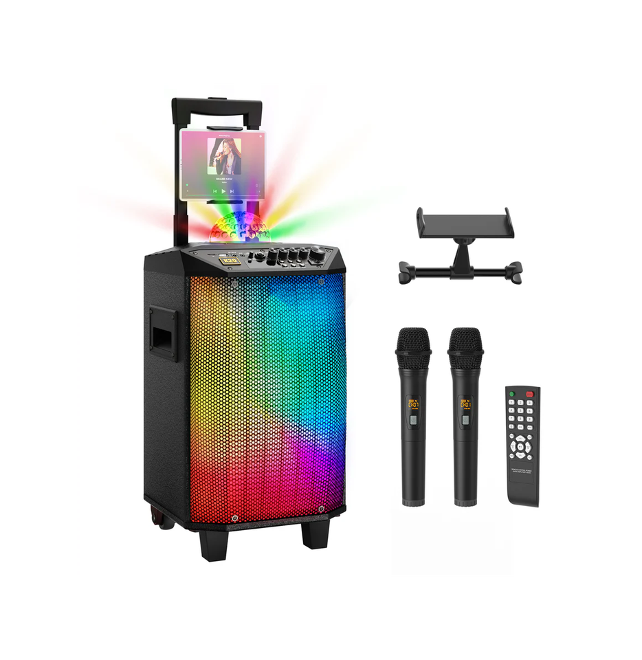 Système de karaoké personnalisé en usine, machine de karaoké portable avec haut-parleur de 10 pouces, deux microphones sans fil, vente en gros