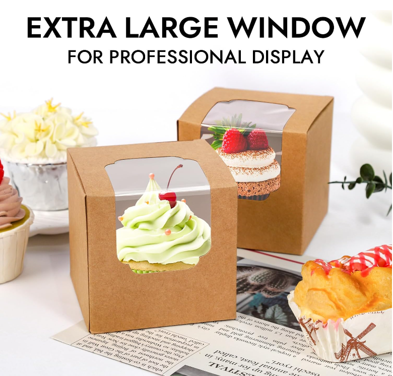 Boîte de papier kraft personnalisée en usine avec fenêtre pour gâteau, savon, nourriture, cadeau de Noël, macarons, boîte de papier kraft recyclé avec logo