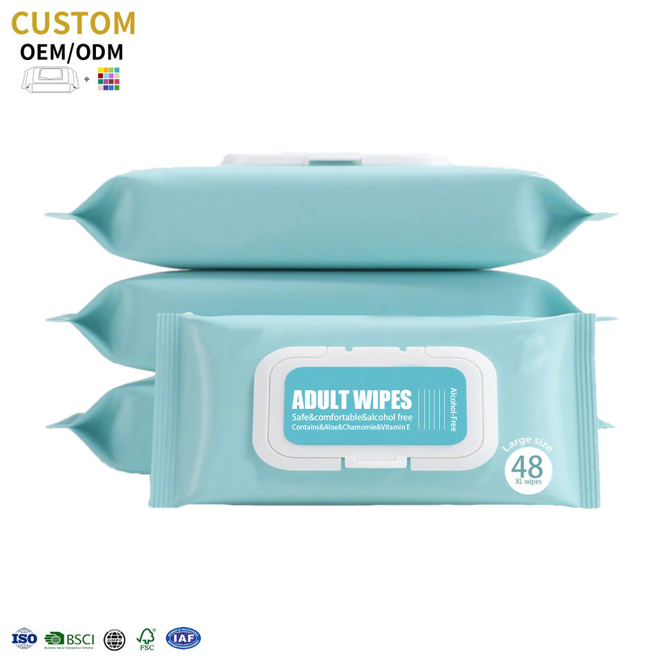 Lingette personnalisée en usine de grande taille pour adultes, extrait d'aloès biologique et eau micellaire, lingettes humides pour le corps, lingettes d'hygiène personnelle pour adultes