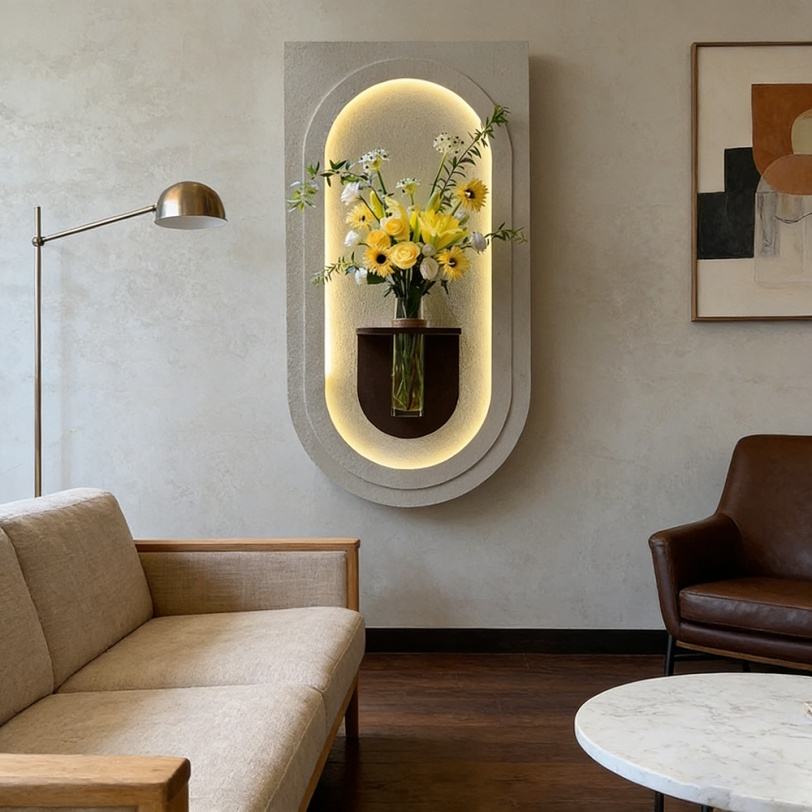 Décoration murale 3D personnalisée pour salon, sculpture sur bois, peinture murale en relief, peinture artisanale en grès avec LED