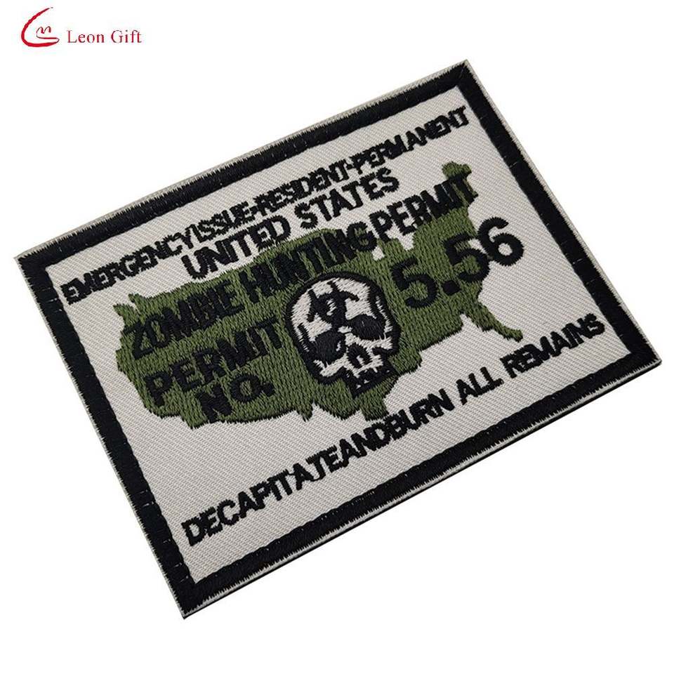 Logo personnalisé d'usine vêtements tissés haute densité fil fin tissé Zombie tueur chasseur drapeau américain T-Shirt Chenille broderie Patch