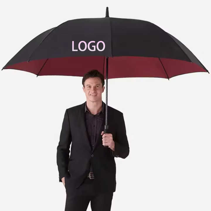 Logo personnalisé d'usine Paraguas Double couche grand parapluie droit robuste grand parapluie de golf coupe-vent semi-automatique