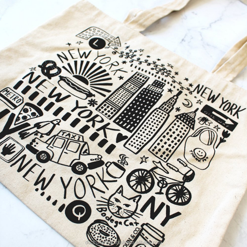 Sac à provisions en toile imprimé avec logo personnalisé d'usine sacs fourre-tout réutilisables et recyclés en tissu Rpet