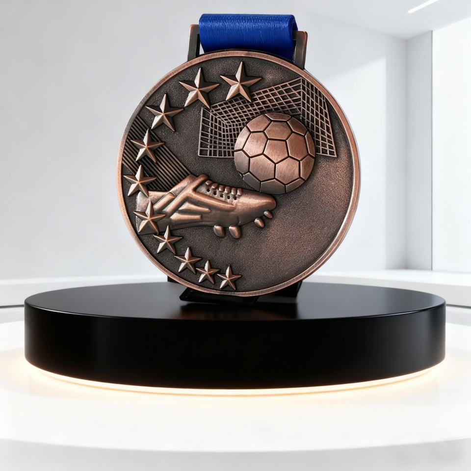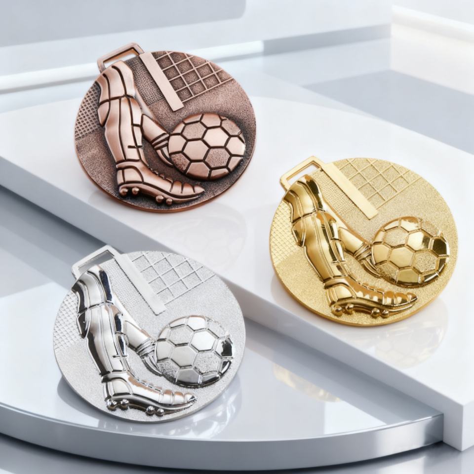Médailles de football 3D or et argent avec ruban