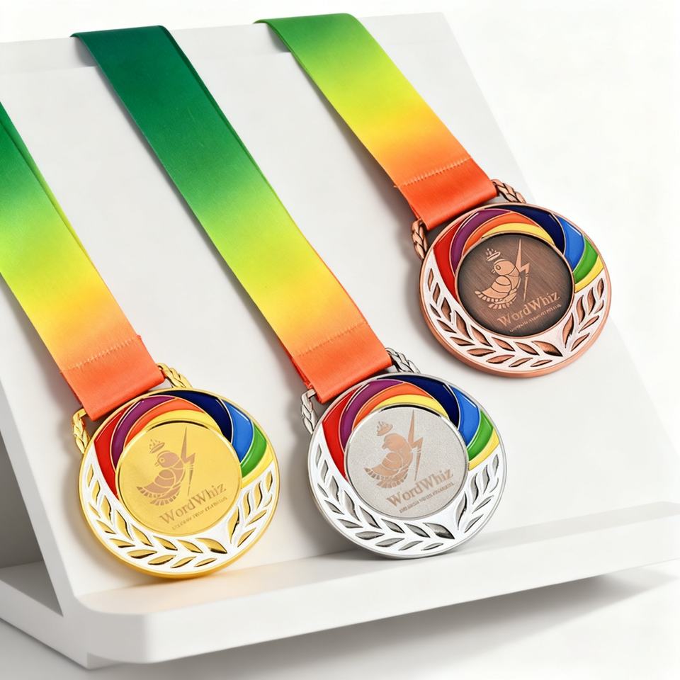 Nom du produit:Médailles de football 3D or et argent avec ruban