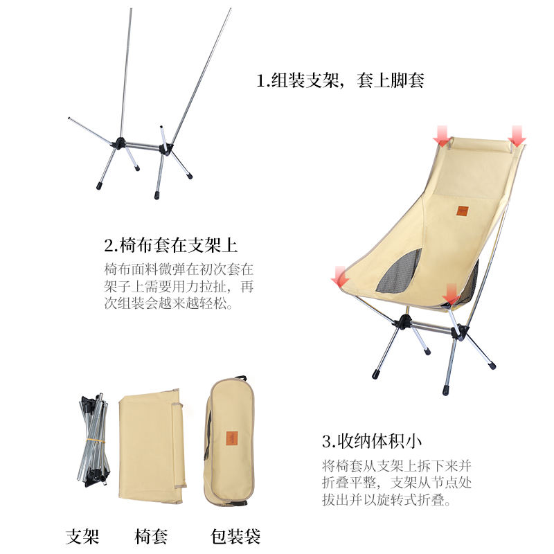 Chaise longue de camping pliable ultralégère avec logo personnalisé, dossier haut, idéale pour les pique-niques en plein air, les parcs et la pêche