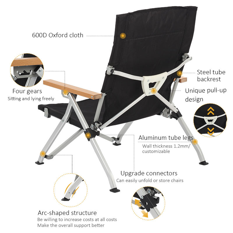 Chaises de plage pliantes ultra-légères et robustes avec logo personnalisé d'usine, chaise de camping à dossier bas