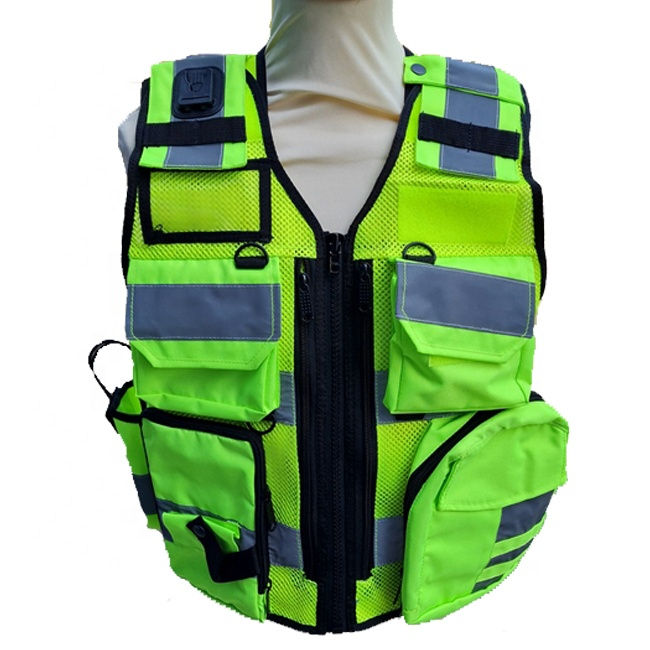 Usine sur mesure gilet gilet de sécurité haute visibilité travail réflecteur vêtements avec poches et fermeture éclair gilets réfléchissants