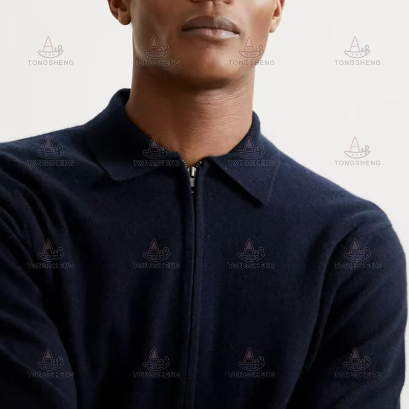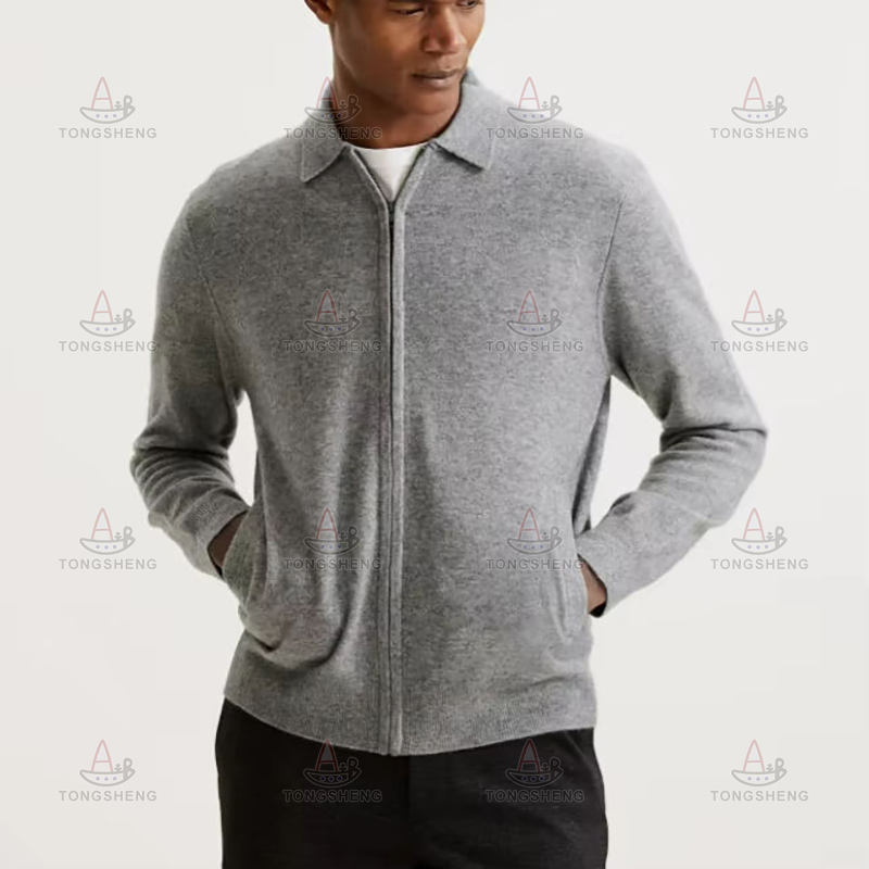 Cardigan en cachemire avec fermeture éclair sur mesure en usine Veste France Pull pour hommes Pull Cardigan en cachemire à col rabattu à fermeture éclair
